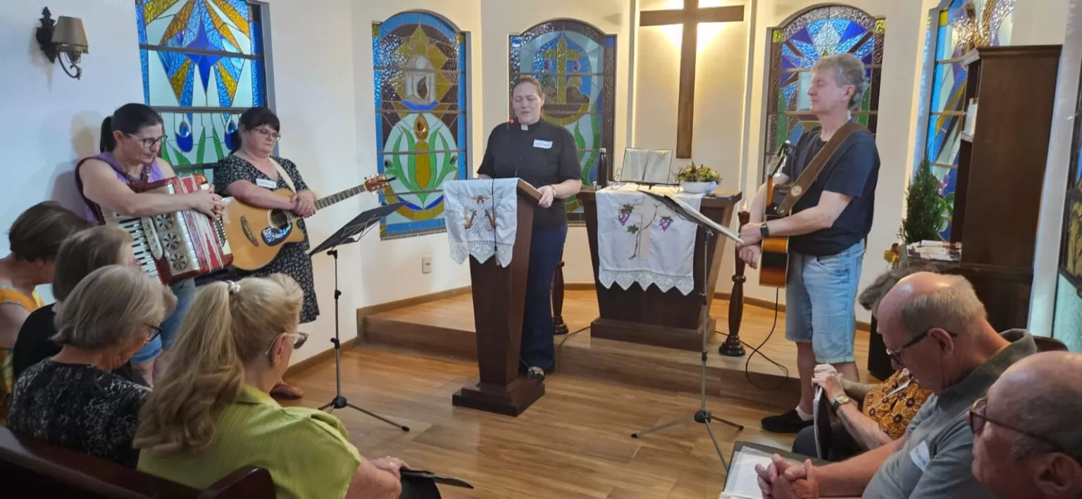As mensagens foram conduzidas pela pastora Daiane Berndt Bottcher, que, com palavras suaves e cheias de significado, convidou todos à reflexão sobre o verdadeiro sentido do Natal. A partir das Escrituras, a mensagem recordou que o Natal não fala de um mundo perfeito, mas de um mundo consolado; não apresenta uma família idealizada, mas uma família real, unida e abençoada por Deus. O presépio, simples e frágil, tornou-se símbolo do convite a aproximar-se com o coração aberto, reconhecendo que o amor é o maior dom.
