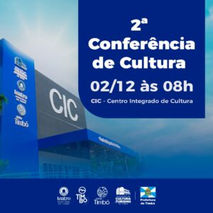 No dia 02 de dezembro, a Fundação de Cultura e Turismo de Timbó realiza a 2ª Conferência de Cultura do município. O evento é aberto a toda comunidade e acontece no Centro Integrado de Cultura Ingo Germer, das 8h às 12h.