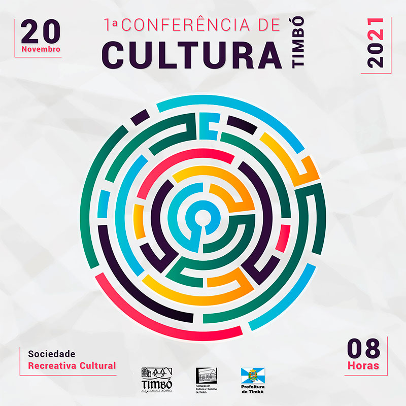 A Fundação de Cultura e Turismo de Timbó promove no sábado, dia 20 de novembro, a 1ª Conferência Municipal de Cultura. A programação inicia às 8h, na Sociedade Cultural Recreativa.