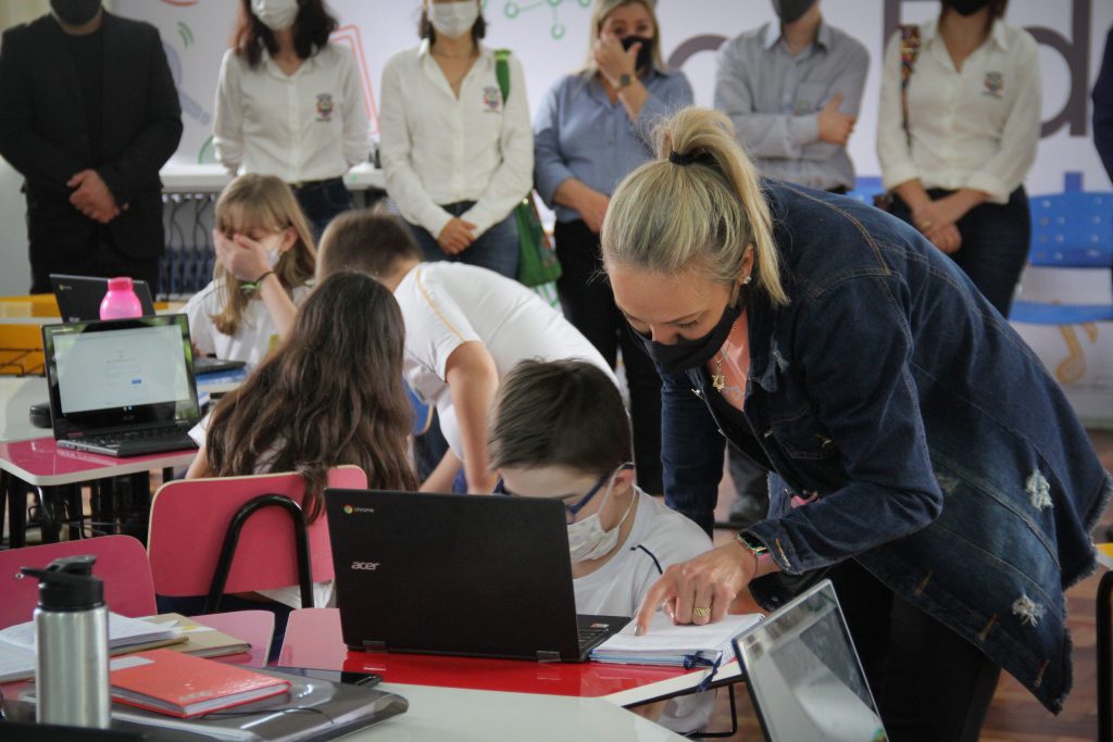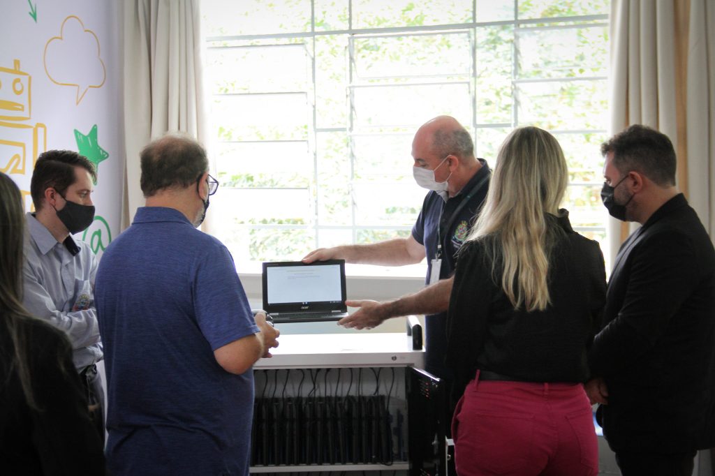 A primeira parada da comitiva durante a manhã foi na Secretaria Municipal de Educação (SEMED), onde a equipe da pasta explicou todo o processo para implantação do projeto. Logo após foram até a Escola Municipal Padre Martinho Stein para ver na prática a utilização dos equipamentos em sala de aula.