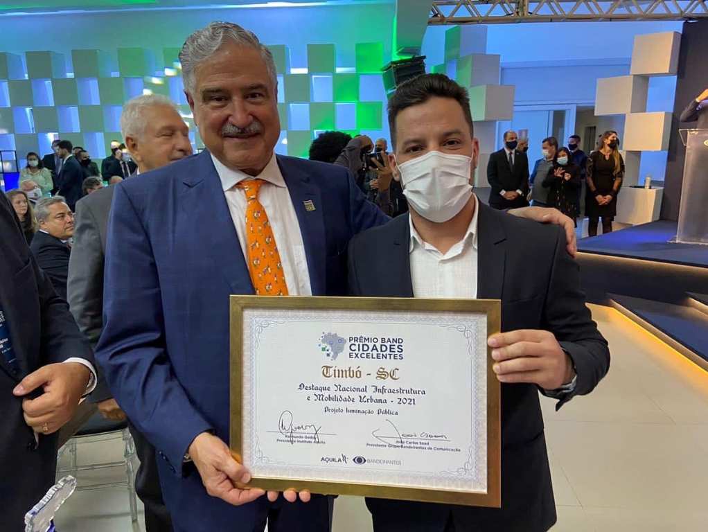 Timbó foi destaque nacional em todas as áreas que concorreu. Entre elas a de “Infraestrutura e Mobilidade Urbana 2021”, com o projeto de Parceria Público-Privada da Iluminação Pública.