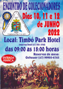 Entre os dias 10 e 12 de junho, Timbó recebe mais um Encontro de Colecionadores, promovido pela Associação Filatélica e Numismática Timboense (AFINUTI).