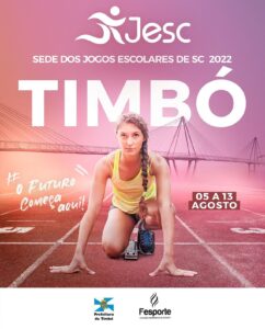 Entre os dias 05 e 13 de agosto, Timbó será sede dos Jogos Escolares de Santa Catarina (JESC), na faixa etária de 12 a 14 anos. Cerca de três mil estudantes de todo o Estado, juntamente com seus professores, são esperados para as competições no município.