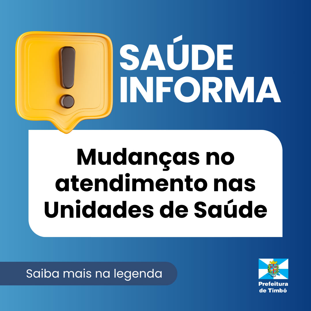 A partir do dia 10 de abril, quarta-feira, as Unidades de Saúde do Município de Timbó irão atender somente casos agudos de qualquer natureza, suspeitos ou confirmados de Dengue, pacientes com sintomas respiratórios e gestantes. Segue normal o atendimento da sala de vacinas, procedimentos de enfermagem e entrega de medicamentos. Essa mudança faz parte das estratégias de atendimento já utilizadas por outros municípios, onde há o aumento nos casos de Dengue.