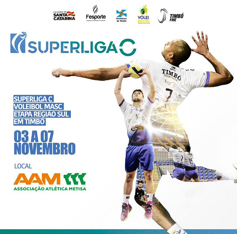 Entre os dias 03 a 07 de novembro, a etapa da região Sul da Superliga C acontece em Timbó. O time A.A. Metisa/FME Timbó disputará dois jogos. O primeiro é nesta quarta-feira, dia 03, contra o Atiradores/Itajaí Provolei/FMEL, às 20h.