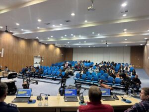 Na noite desta quarta-feira, 02 de julho, a Câmara de Vereadores de Timbó realizou a Audiência Pública para discutir o uso de ciclomotores, autopropelidos e bicicletas elétricas na cidade. A audiência foi conduzida pelo vereador Clauder Geike, presidente da Comissão de Infraestrutura, Desenvolvimento e Bem-Estar Social, que conduziu a noite, acompanhado dos vereadores Jonas Weege e Thelma de Souza Lenzi.