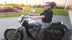 Conrado de Souza é muito conhecido no bairro Araponguinhas por ser um motoqueiro há muitos anos, com sua popular moto Onda 78, na cor azul.