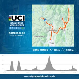 Serão dois percursos de baixa altimetria no Vale Europeu Catarinense, com largada e chegada em Pomerode. A Gran Fondo terá 120km e 1.140m de altimetria acumulada e o Medio Fondo, 80km e menos de mil metros de altimetria acumulada.