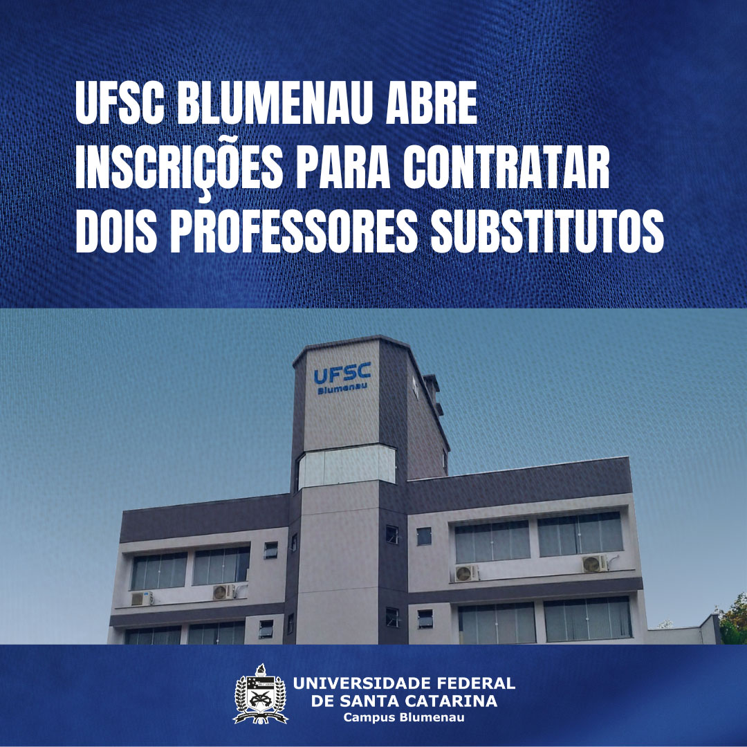 O Campus Blumenau da Universidade Federal de Santa Catarina (UFSC) está com inscrições abertas para seleção de dois professores substitutos que irão atuar nas áreas de Engenharia Elétrica e Matemática. As inscrições podem ser feitas até às 17h desta sexta-feira, dia 20 de janeiro.