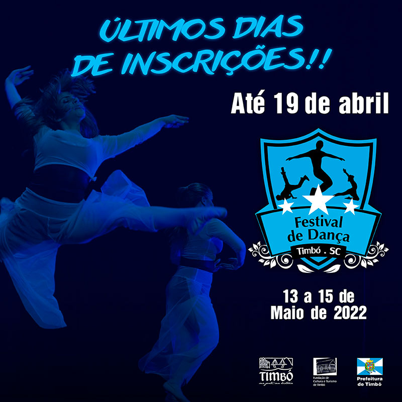 Um dos principais eventos de dança do Estado, o Festival de Dança de Timbó, está com inscrições abertas até o dia 19 de abril. O evento acontece entre os dias 13 e 15 de maio, no Pavilhão de Eventos Henry Paul. São quase R$ 10 mil em prêmios para os bailarinos.