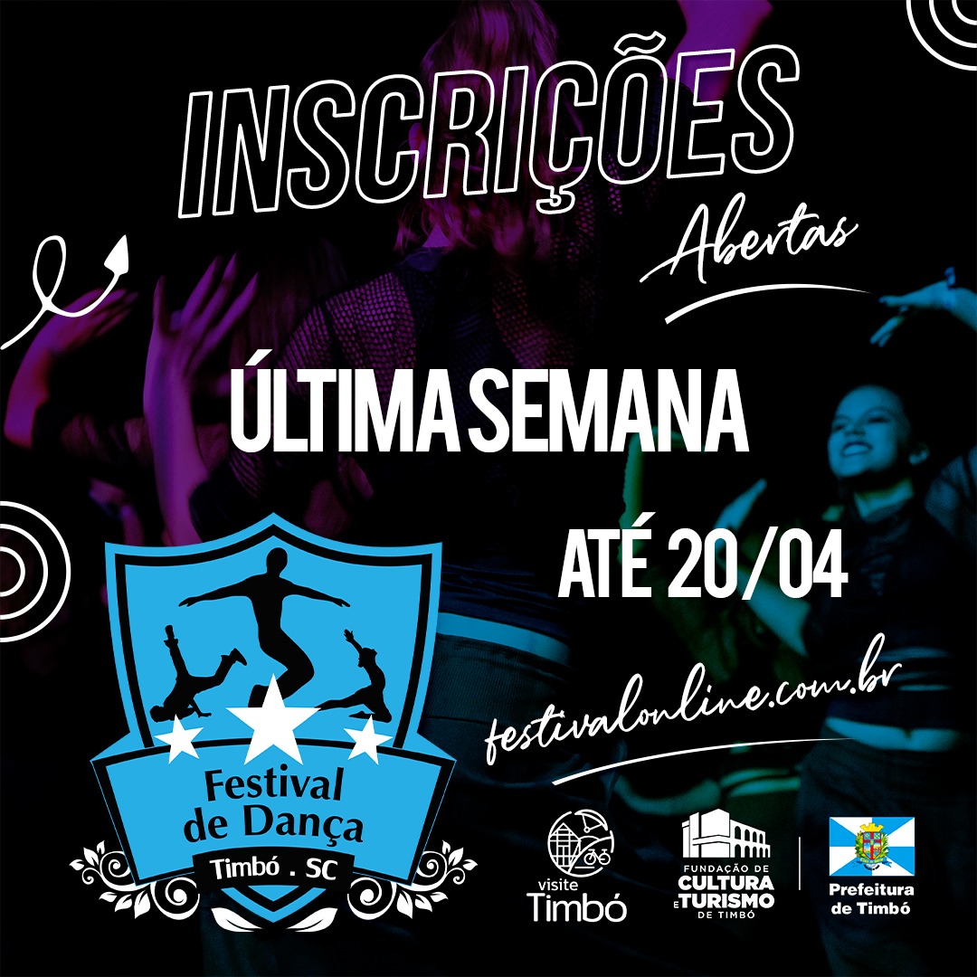 Dançarinos, não percam sua chance! Um dos principais eventos de dança do Estado, o Festival de Dança de Timbó, está com inscrições abertas até o dia 20 de abril.
