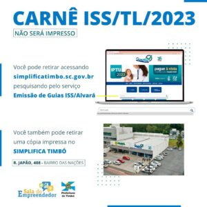 O carnê do imposto não é entregue impresso. O carnê pode ser retirado no site do Simplifica Timbó, acesse aqui.
