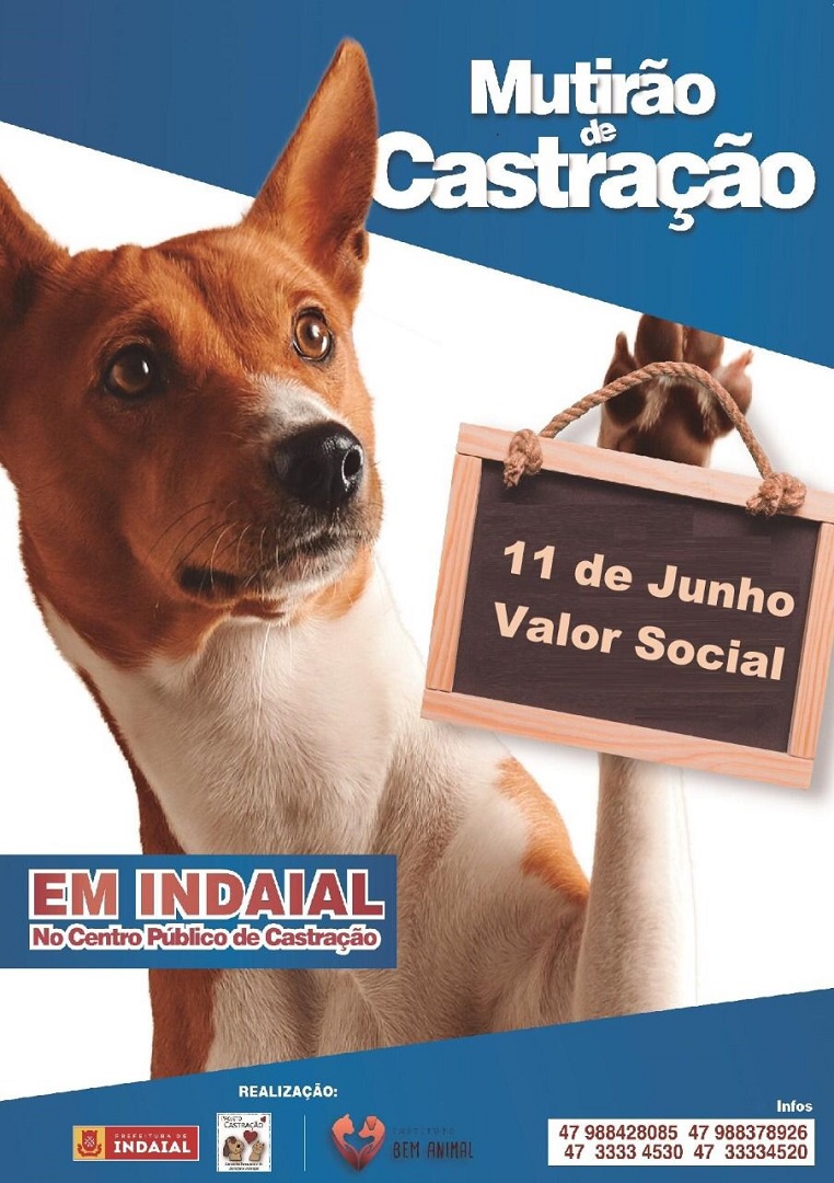 Seguem abertas as inscrições para o quinto Mutirão de Castração Animal de 2022, uma parceria da Prefeitura de Indaial com o Instituto Bem Animal. A ação acontecerá neste sábado, 11 de junho. Gatos e cães poderão ser castrados. No caso de cães, as exceções são para as raças pug, bulldog, pequinês e lulu-da-pomerânia. A cirurgia ocorrerá no Centro Público (rua Marechal Deodoro da Fonseca, 4.600).