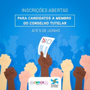 Seguem abertas até o dia 05 de junho, estão abertas as inscrições de candidatos interessados em fazer parte do Conselho Tutelar de Timbó.