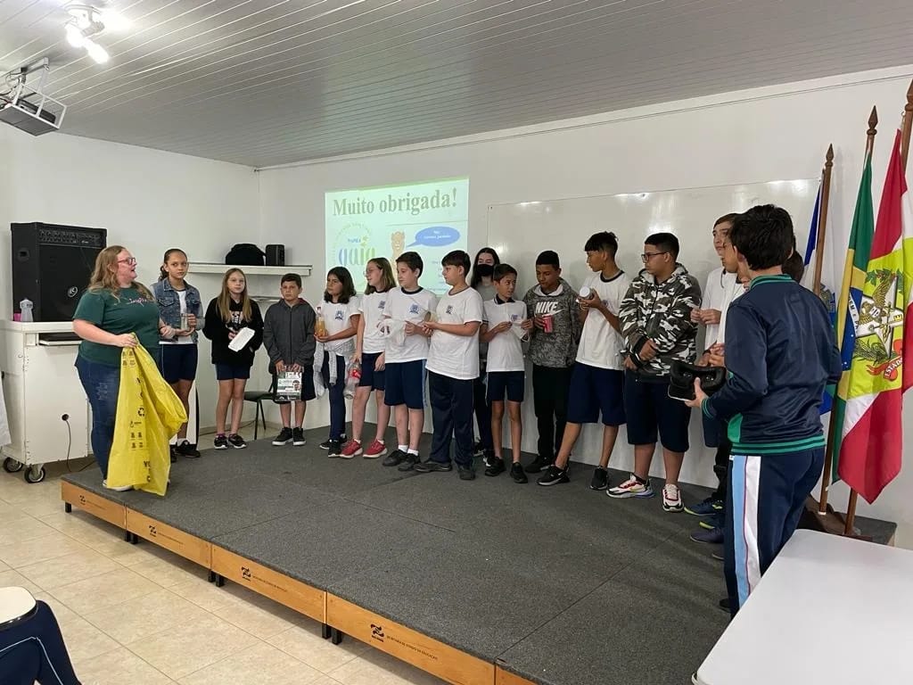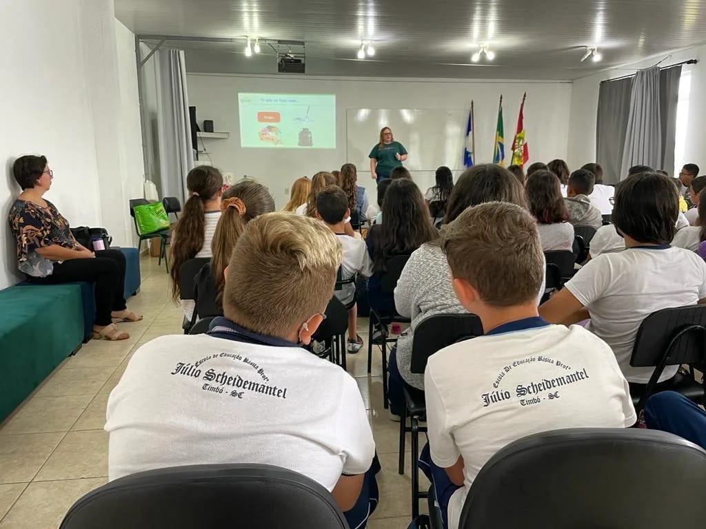 Nesta semana o SAMAE, junto à Prefeitura de Timbó e o Grupo Intersetorial de Educação Ambiental (GIEA) do município, conversou com estudantes da Escola Municipal Maurício Germer, Escola de Educação Básica Professor (EEB) Juvenal Cardoso Zanella e EEB Professor Júlio Scheidemantel.