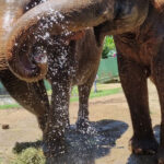 Além dos picolés, os animais ganham um reforço na refrigeração, como o ar condicionado instalado no habitat dos pinguins e dos primatas. “Os chimpanzés, macaco-aranha-de-testa-branca, mico-leão-dourado, sagui-imperador adoram se refrescar dessa forma”, conta. Há também quem se divirta com os banhos de mangueira, como as elefantas Kênia e Alika, ou com os aspersores, uma espécie de “chuveiro” instalado nos recintos e em outras áreas do bioparque, que esguicham água para garantir o conforto térmico dos animais e também de quem passa pelo local. Alguns habitats possuem ainda piscinas para um banho refrescante e divertido.