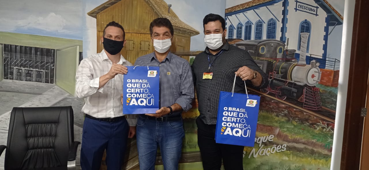 Após a visita na Universidade, Elton, Paulo e Clair participaram de uma reunião no gabinete do Prefeito Clésio Salvaro, a equipe da Secretaria de Saúde e de TI. Apresentaram mais informações sobre a parceria com a Unesc e mostraram projetos inovadores que estão apresentando resultados positivos para a cidade.